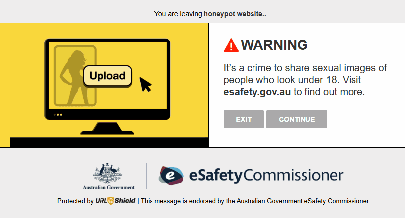 The University of Tasmania has undertaken a series of three randomised control trials evaluating the effectiveness of warning messages. The first two focused on deterring users from accessing CSAM-adjacent content, testing both law enforcement and therapeutic messages. A third trial examined the effectiveness of a warning in deterring the sharing of non-consensual sexual imagery.